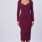 Questo elegante abito midi è perfetto per ogni occasione speciale. Il suo colore bordeaux intenso e il design aderente mettono in risalto la figura, mentre lo scollo a cuore aggiunge un tocco di femminilità. Le maniche lunghe lo rendono ideale per le stagioni più fresche. Realizzato in tessuto di alta qualità, questo abito è comodo da indossare e valorizza la silhouette.